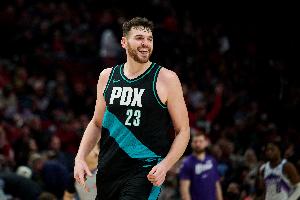 上半场,开拓者内线克林根表现出色,外线神准篮板积极,已经拿到两双,在16分钟的时间里,投篮6中4,三分球3中3,罚球2中2,贡献13分11篮板(5前场篮板)2助攻2盖帽的数据,正负值+14。